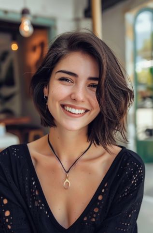 Cut right at the lip line, this daring look highlights cheekbones if styled with a bit of wave.