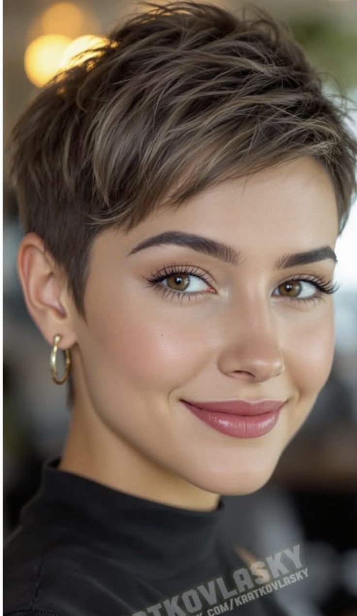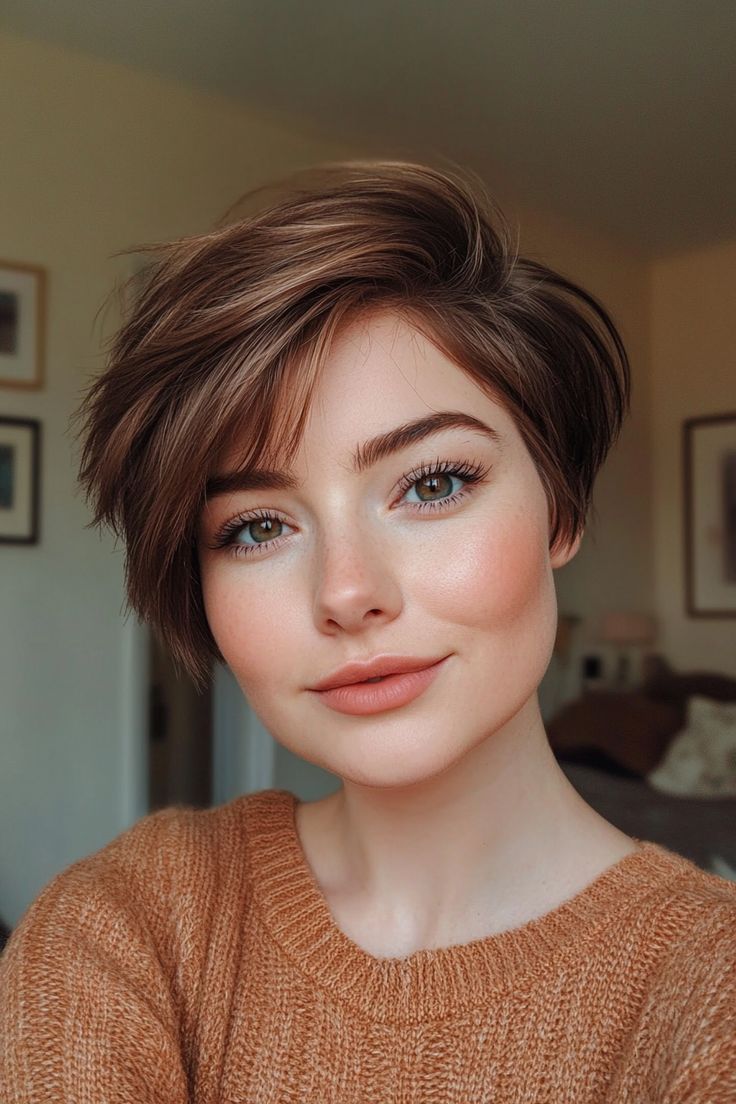 Pixie cuts are often feared by those with rounder faces, but they can be incredibly slimming. The secret lies in adding volume at the crown.