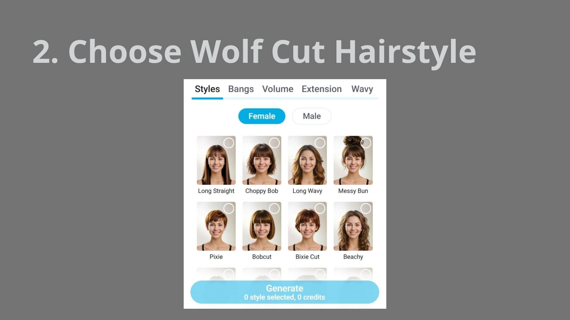 Choose the Wolf Cut hairstyle from the virtual hairstyles library. You can also adjust the fades.