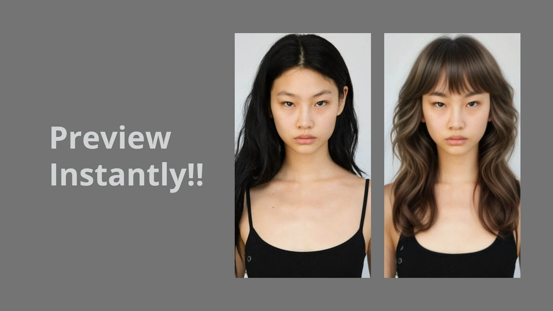 See your new look in seconds! Beyond that, try out different hairstyles, lengths, or colors—no strings attached.