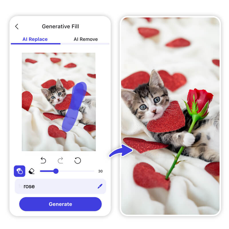 AI Replace lets you modify specific elements inside your Valentine’s card—perfect for quick personalization.