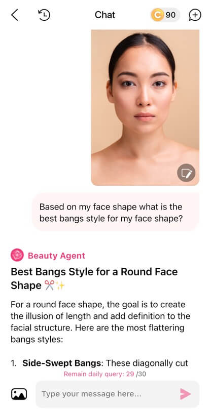 Step 4: Ask Beauty Agent for Bangs Suggestions