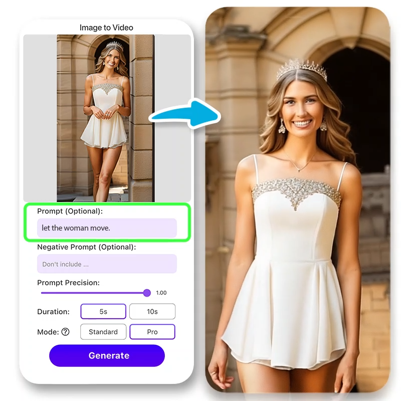 Simply just upload your DTI photo and choose an AI template or enter a prompt to describe how you want to animate your photo.