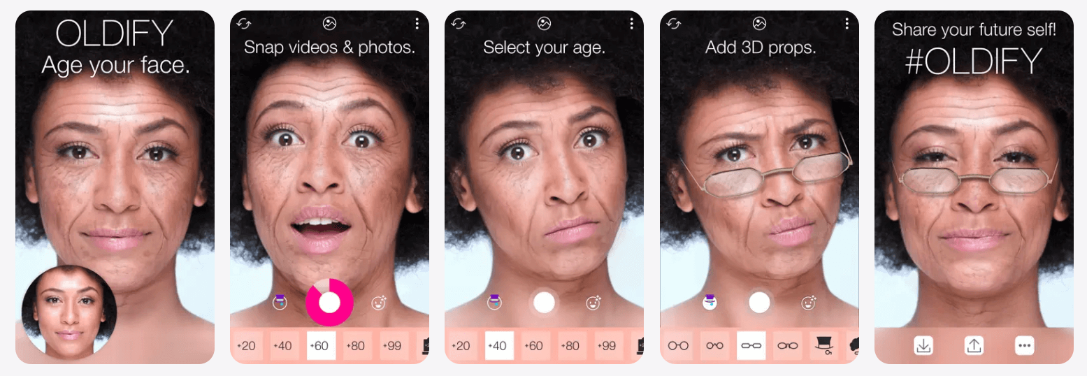 Oldify delivers playful animated aging effects and GIFs, creating fun and entertaining photos. As a creative aging filter app, it’s perfect for sharing lighthearted content with friends or on social media.