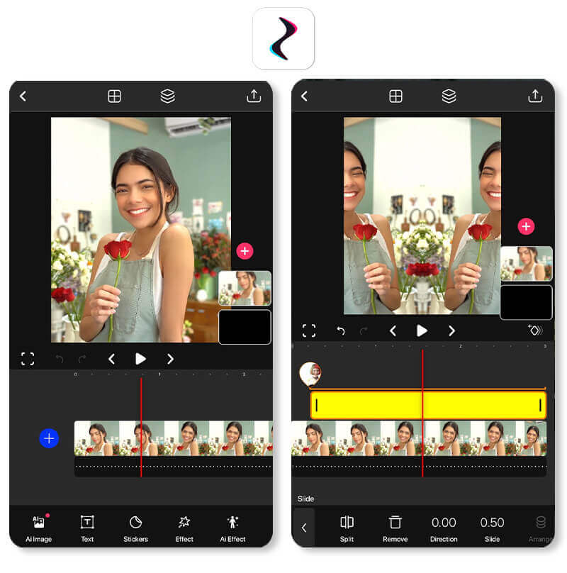 Videoleap, the perfect app for beginner video editors, you can apply artistic effects, mix videos with images, and even add text and layer transformations to your videos without any advanced knowledge.